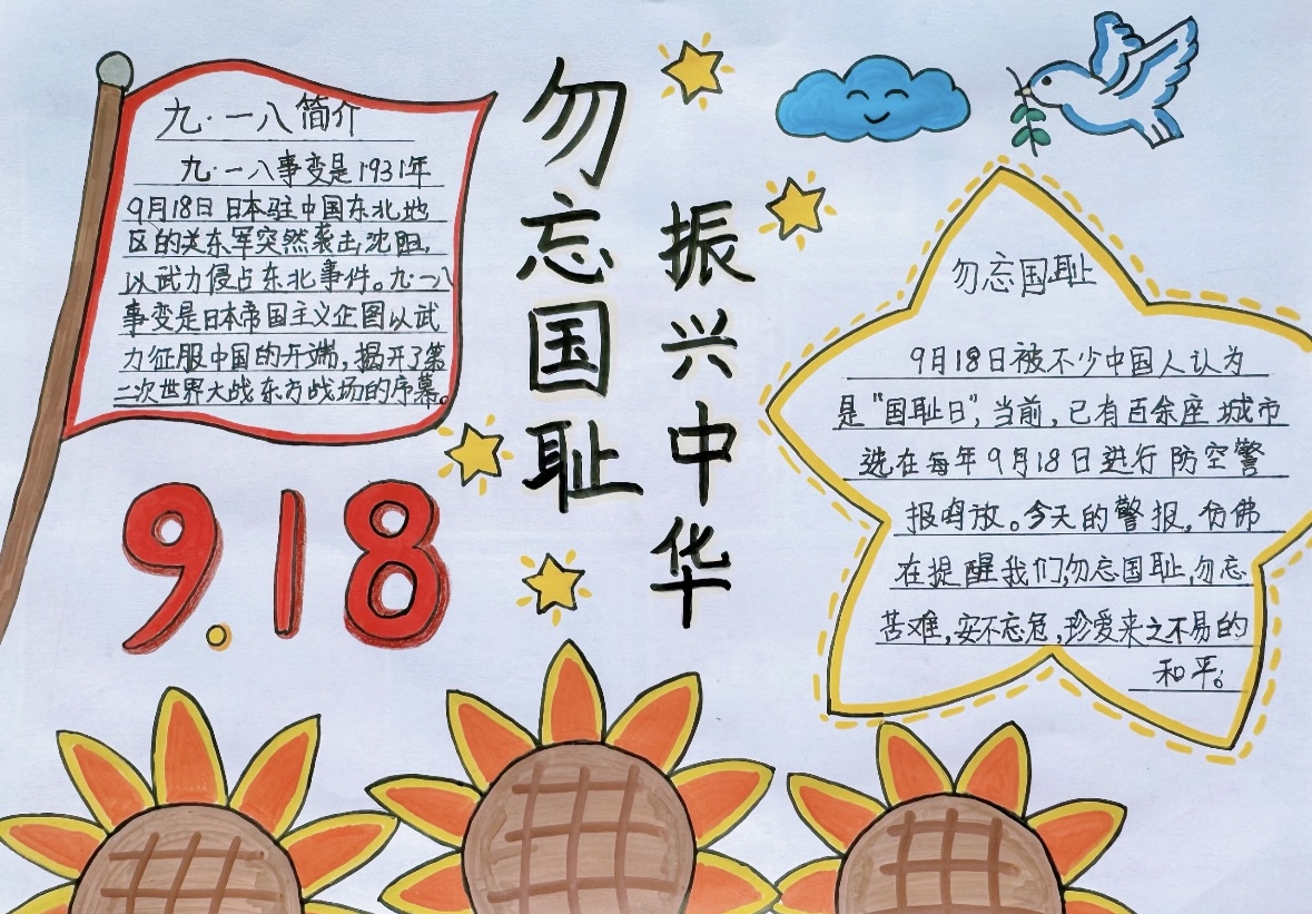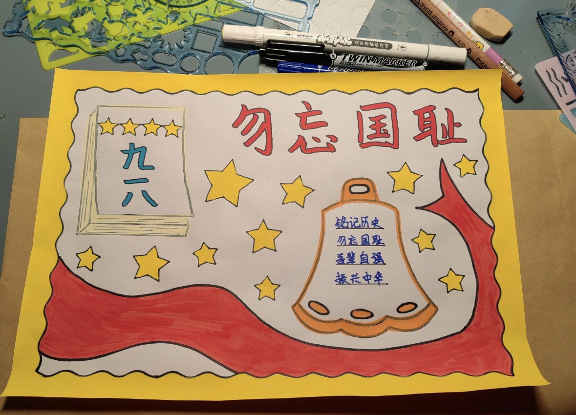 默哀仪式后,各班级围绕"九一八"历史开展主题活动。班主任播放相关史料,学生们通过老照片、史料文献和实物展品,了解"九一八"事变的背景与经过,聆听老师讲解东北抗日联军的英雄事迹;学生们共同制作"历史记忆书签",将"勿忘国耻""振兴中华"等字样与历史事件时间节点绘于书签之上,作为纪念与警醒;初二(3)班的学生们则以小组为单位,编排了简短的历史情景剧,再现抗日军民的抗争场景,在角色扮演中感悟先烈们的不屈精神。