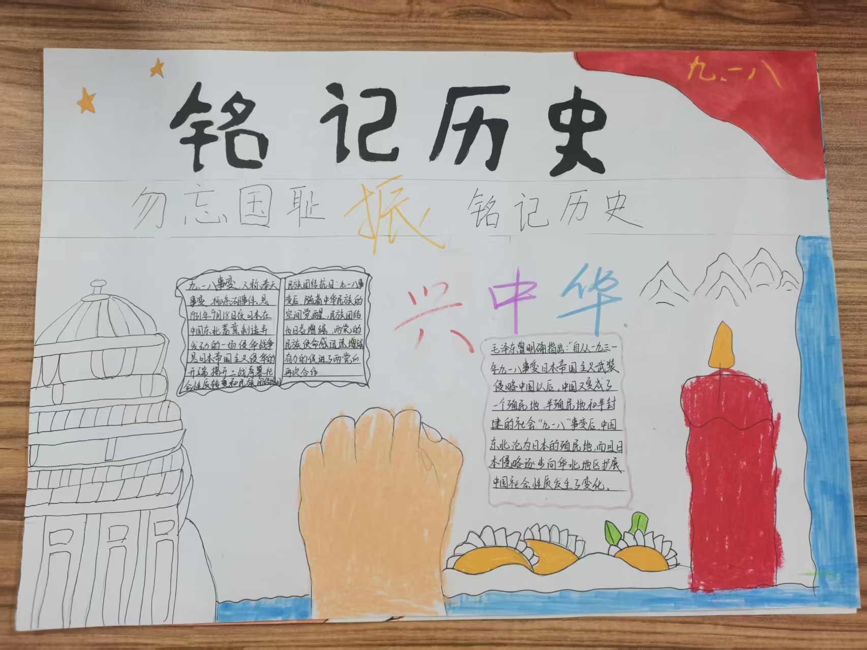 随后,各班级围绕抗战主题开展了手抄报绘制活动。学生们以小组为单位,查阅历史资料,精心设计版面,用画笔和文字表达对抗战英雄的崇敬与缅怀。手抄报内容丰富多样,既有对抗战重大战役的梳理,也有对英雄人物的致敬;既有历史事件的深刻剖析,也有对和平发展的真挚呼吁。一幅幅作品色彩鲜明、图文并茂,展现了青少年对抗战精神的独特理解和新时代青年的责任担当。