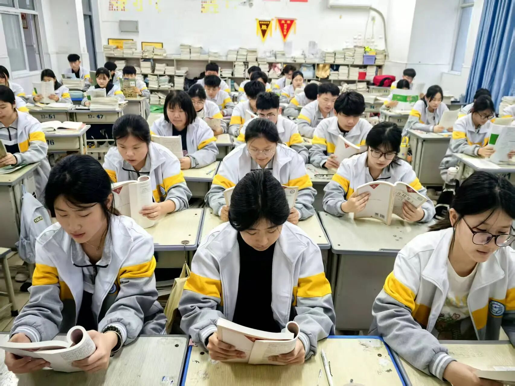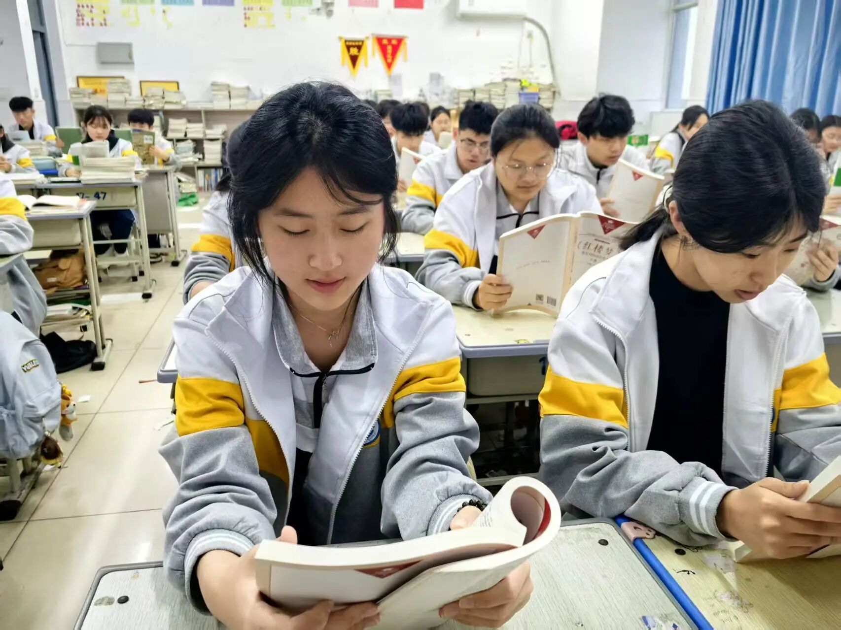 “做题累了,翻几页书就像给大脑充个电。”高二一位同学笑着说,她最近迷上了汪曾祺,“看他写高邮的咸鸭蛋,觉得生活更香了。”