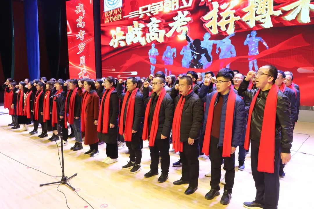 随后,在百日冲刺集体宣誓中,全体高三教师庄严宣誓,铿锵的誓言,让我们感受到老师们为学生奉献自我,陪伴学生决胜2022年高考的信心!