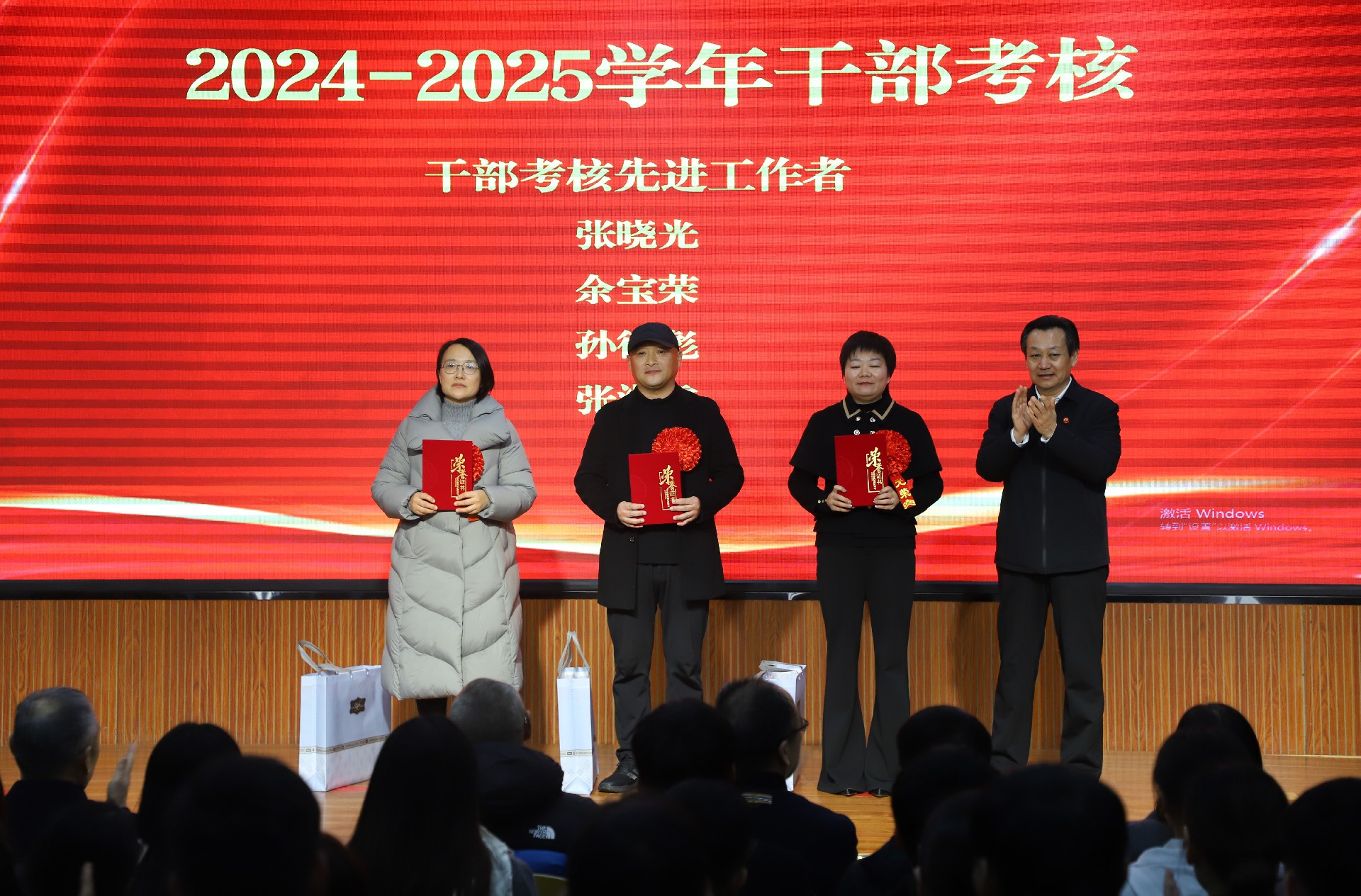 颁奖礼毕,优秀干部代表、高三A部主任孙德彪发言。他表示,过去一年,干部团队在教学上紧锚学情,以“研、效、实”为准则深耕课堂,推动学生自主学习;在育人中坚持宽严相济,通过主题班会、日志批阅及各类活动,用心陪伴并唤醒学生成长;在管理岗位上承上启下,甘于奉献,以率先垂范赢得信任。新的一年,干部团队将持续以荣誉为动力,凝心聚力、担当使命,在学校的引领下,与全体教职工一道,奋力开启高质量发展的新篇章。