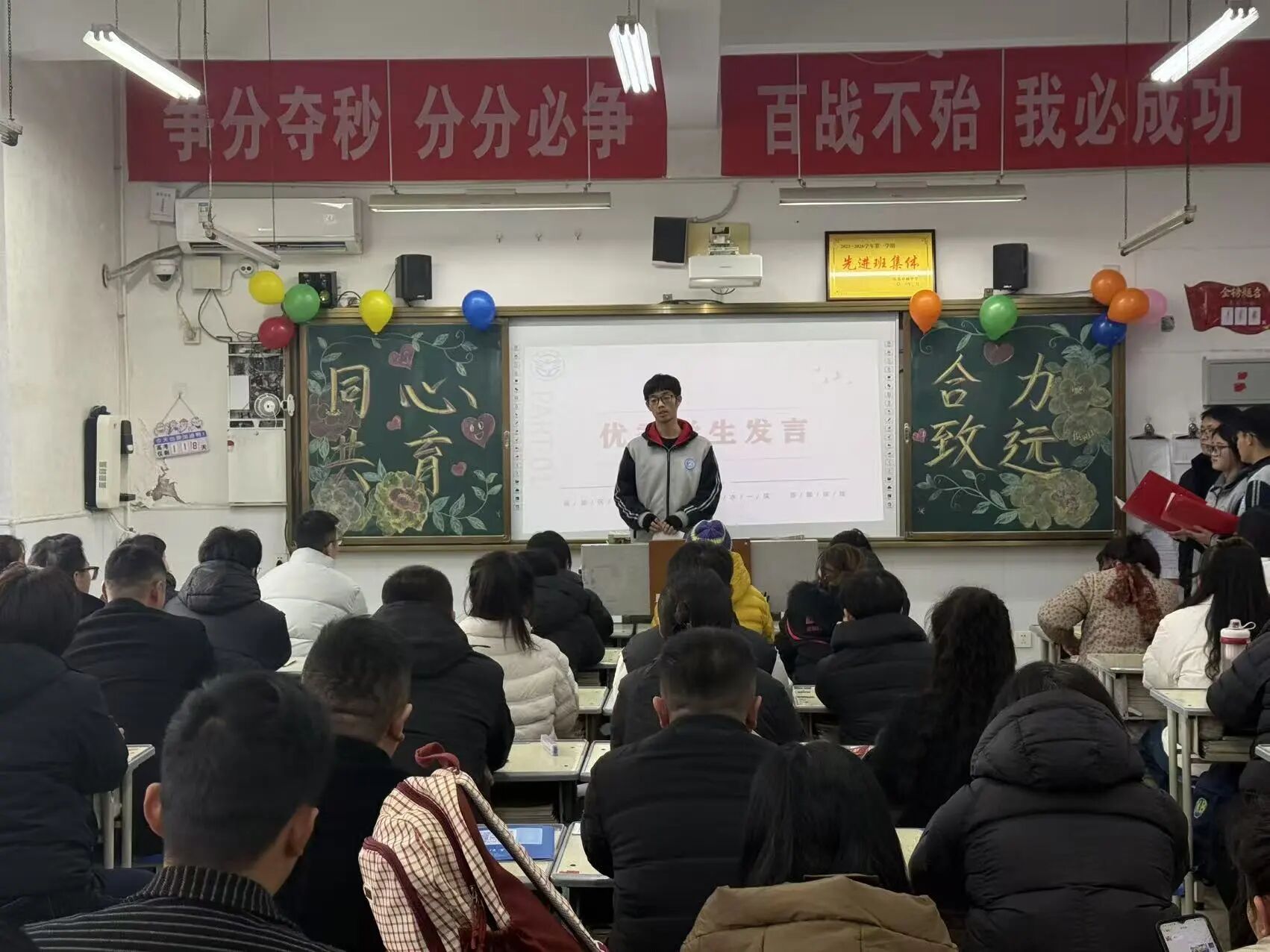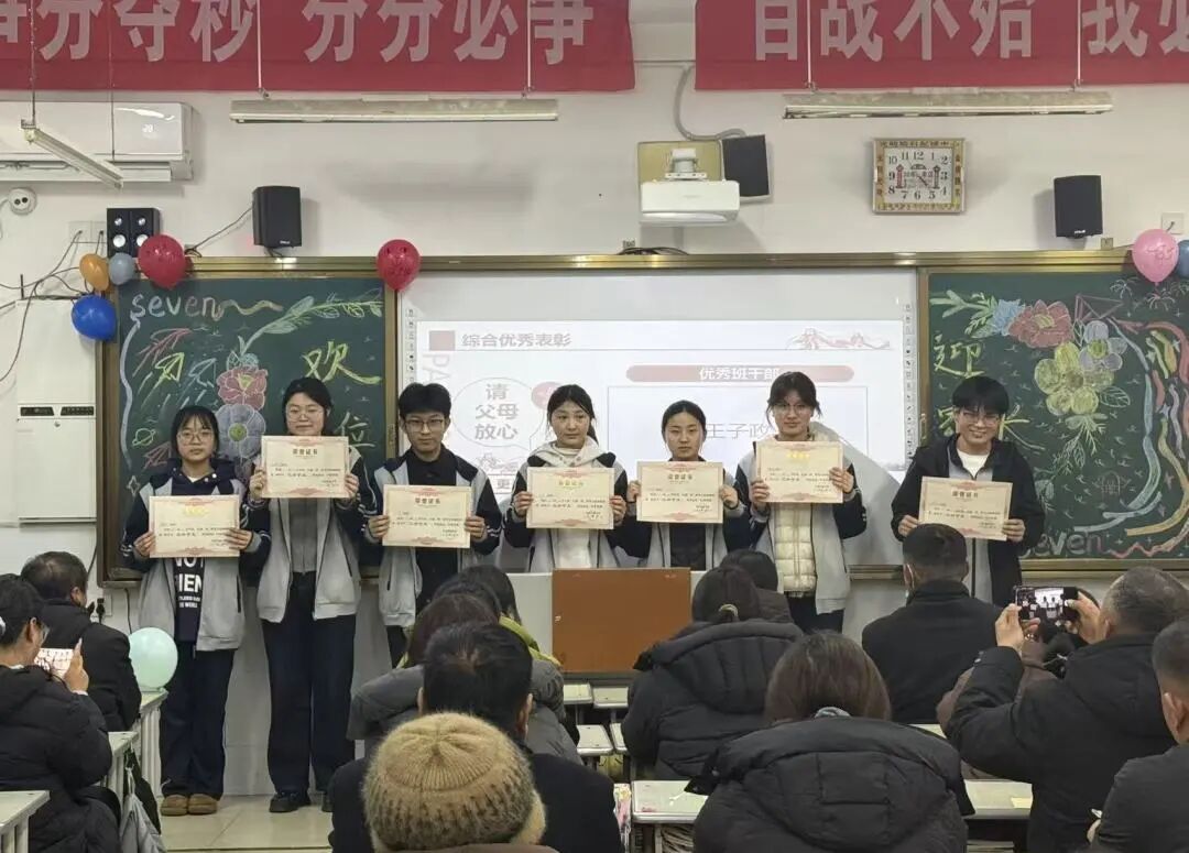 各班对表现优异的学子进行了表彰。担当负责的班干部、成绩优异的佼佼者、单科突出的标兵、进步显著的“黑马”……每一次掌声,不仅是对优秀者的认可,更激励着每一位同学砥砺前行。