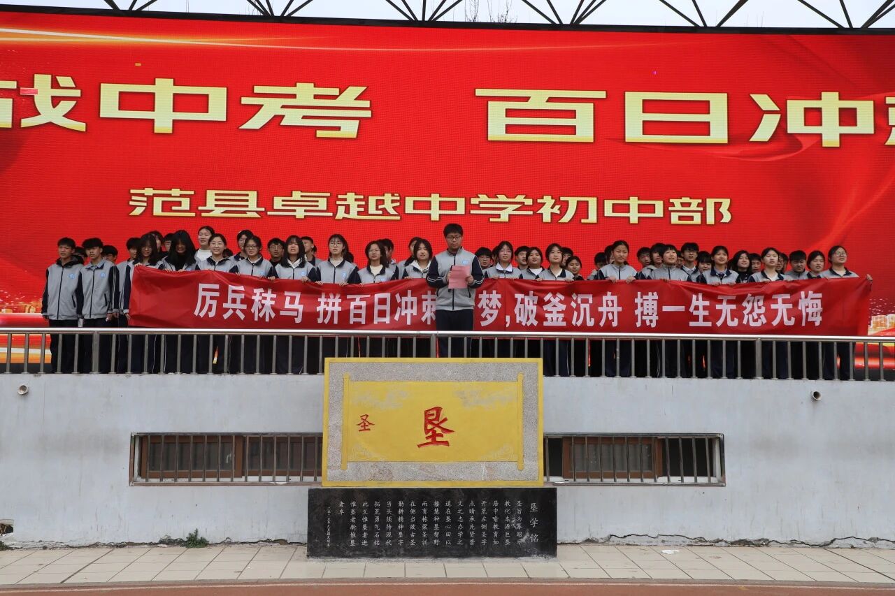百日竞渡,破浪展雄风;六月试锋,折桂步蟾宫。这场热血沸腾的冲刺动员,为卓越学子注入了澎湃动力。2026届初三全体师生必将以此为起点,勠力同心,用百日深耕换六月繁花;以拼搏汗水谱写范县卓越中学中考新辉煌。