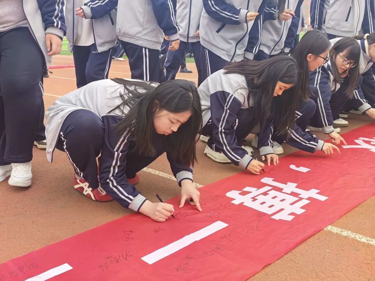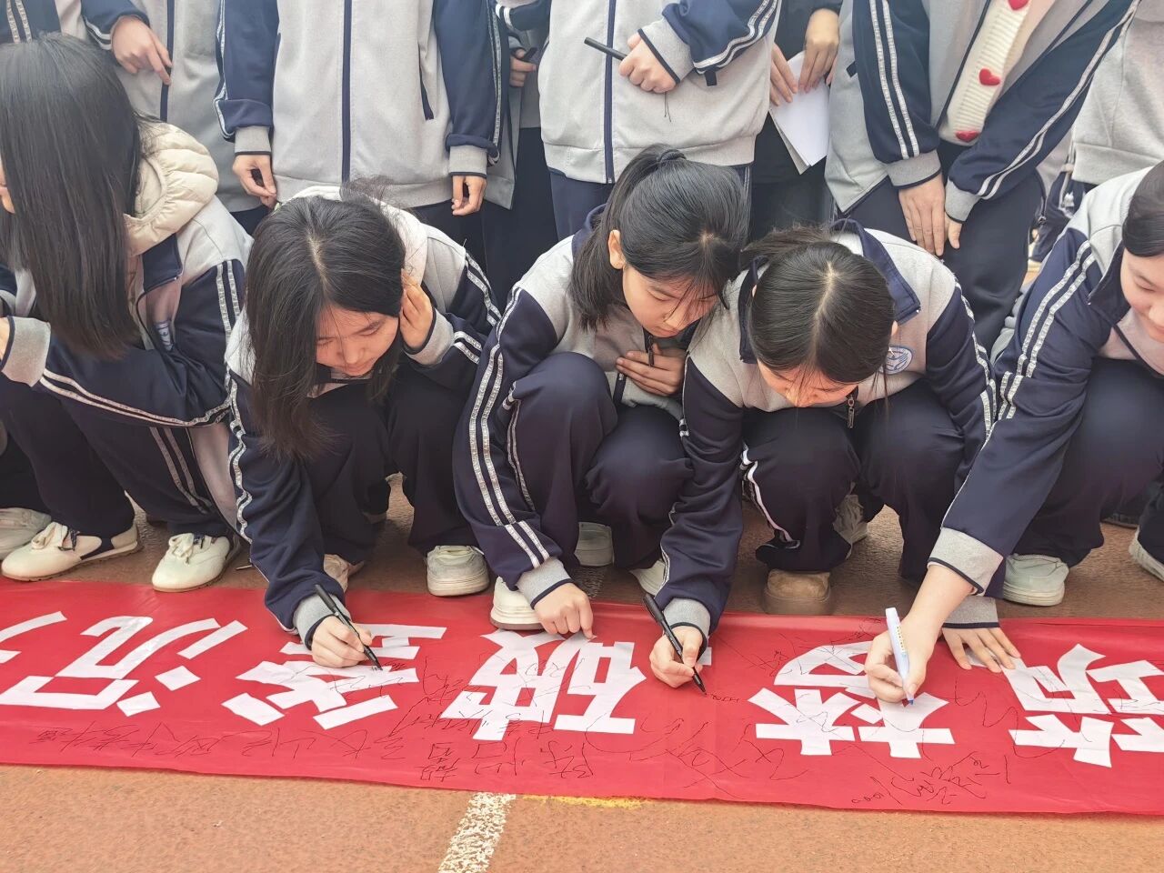 签名仪式上,各班同学有序在班级条幅上郑重写下姓名与目标。一笔一画,镌刻的不只是名字,更是对未来的庄严承诺;一字一句,许下的不只是目标,更是对青春的无悔担当。
