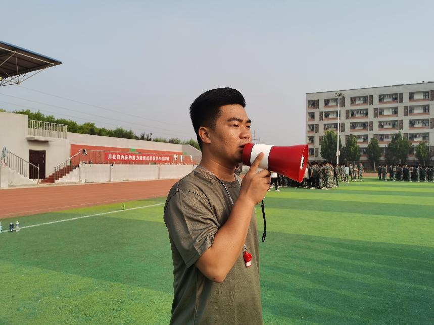 “抬头,挺胸、提臀、收腹、眼睛平视,脚跟并拢”教官们耐心地给高一新生讲解动作的要领。