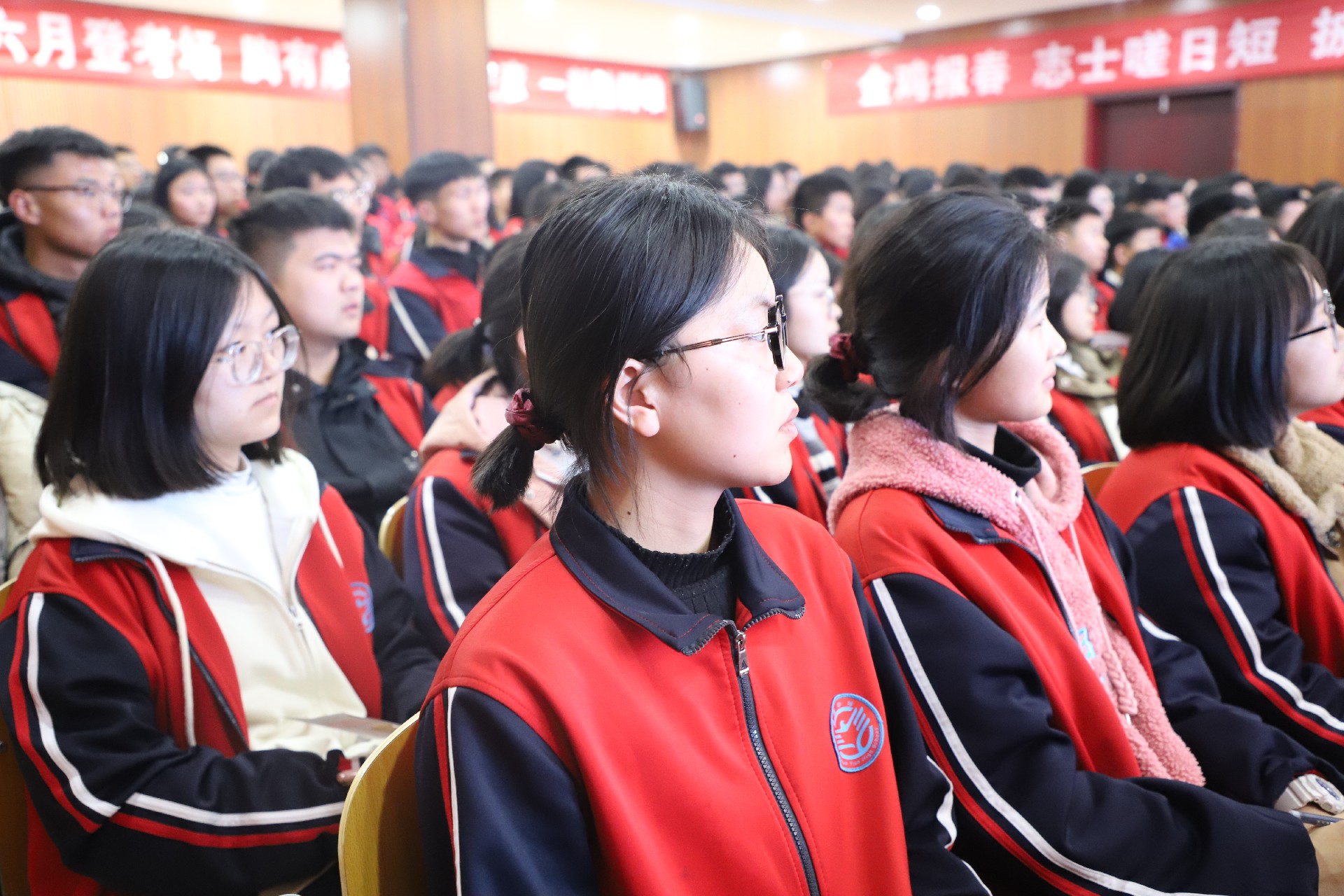 青春如火,誓言如歌。在学生代表的带领下,高三全体学生庄严宣誓,誓言铿锵,响彻会场。凭着“黄沙百战穿金甲,不破楼兰终不还”的决心、“天生我材必有用,千金散尽还复来”的信心、“猝然临之而不惊,无故加之而不怒”的平常心,学子们誓做破茧的蝴蝶、搏击风雨的海燕、抢滩登陆的战士,以洪荒之力,脚踏实地、披荆斩棘。