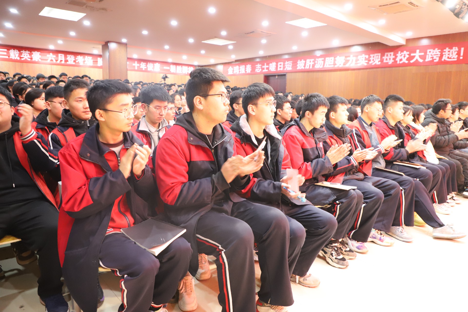 于校长表示,如果说目标是永不枯竭的力量源泉,那么信心便是催人奋进的号角,拼搏便是成就高考梦想的渠道。只要我们真正勇敢地拼搏一场,我们就获得了一笔宝贵的精神财富。只要我们以这种奋斗的态势,怀着强烈的竞争意识,勇敢地面对高考挑战,我们就一定是胜利者,一定能不可阻挡地走向高考的成功!