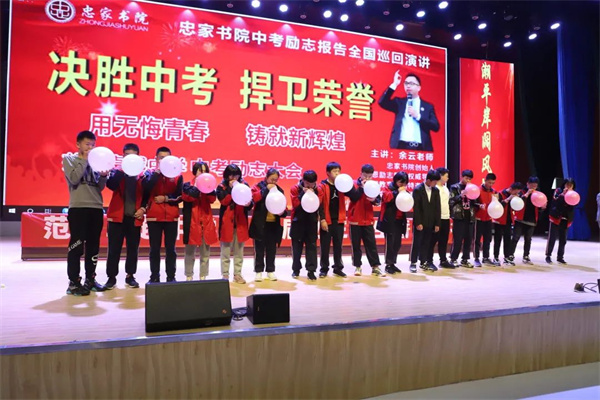 江西金太阳教育集团特邀讲师、忠家书院创始人余云做了激情澎湃的励志报告,让在座的每一位师生都深受启发,进一步激励学生以昂扬的斗志、科学的方法、良好的心态投入到紧张的中考复习中去,以优异的成绩回报父母,回报老师,回报祖国,不给自己留下任何遗憾,打赢人生中第一次重要战役。