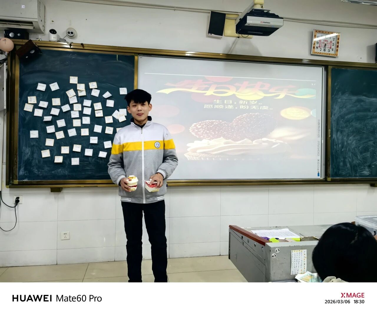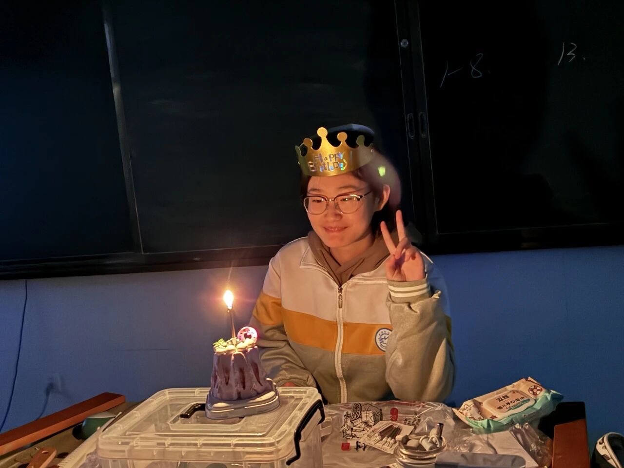 蛋糕不大,其上方的水果也不多,但没有人在意这些。当歌声落下,祝福的话被喊成参差的声浪,掌声随即又点亮了整个教室。