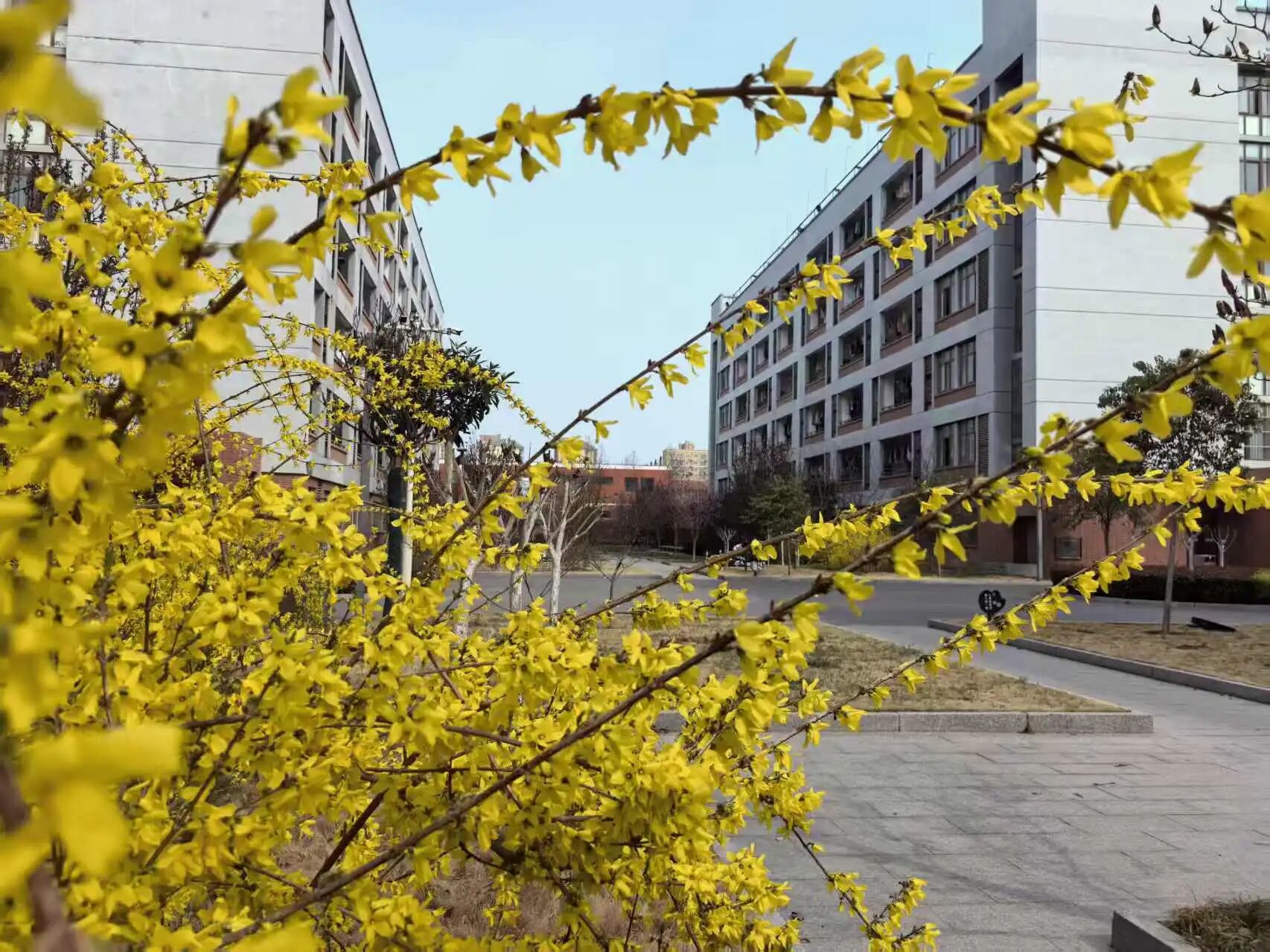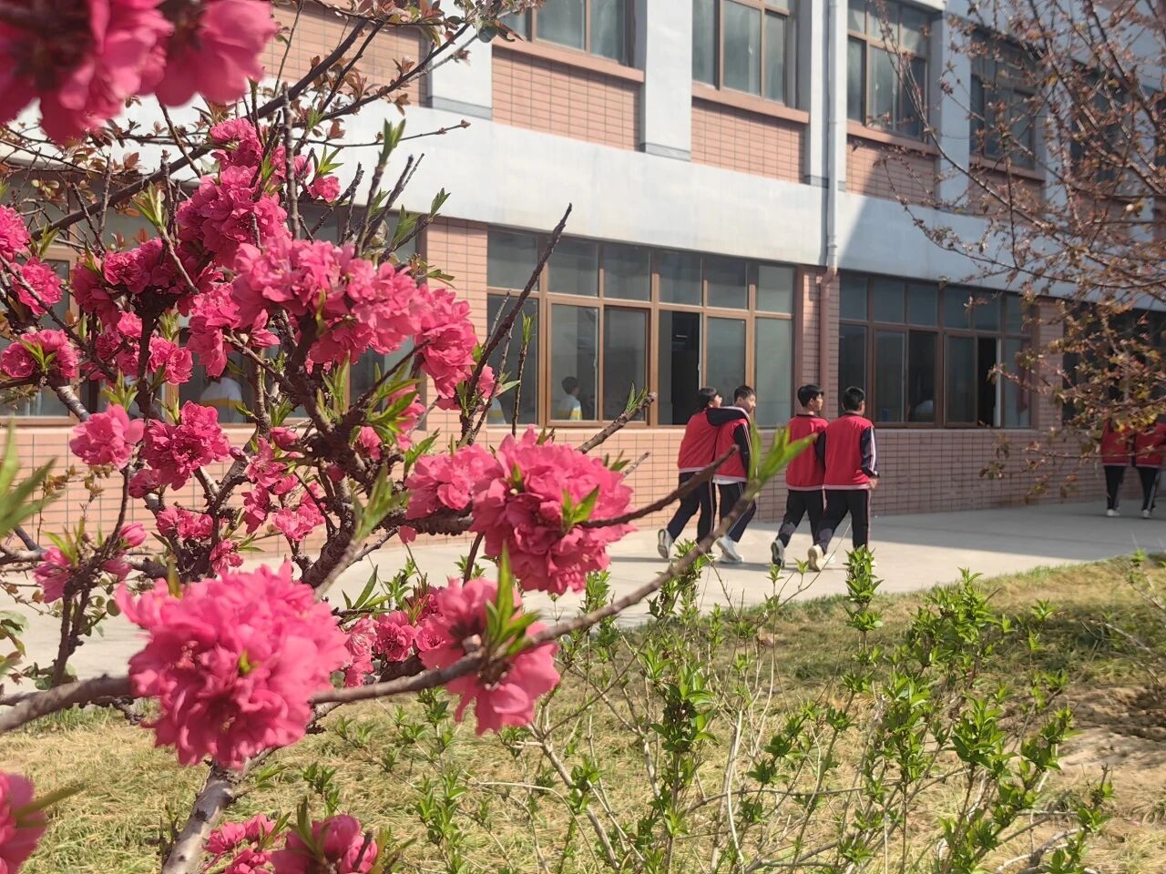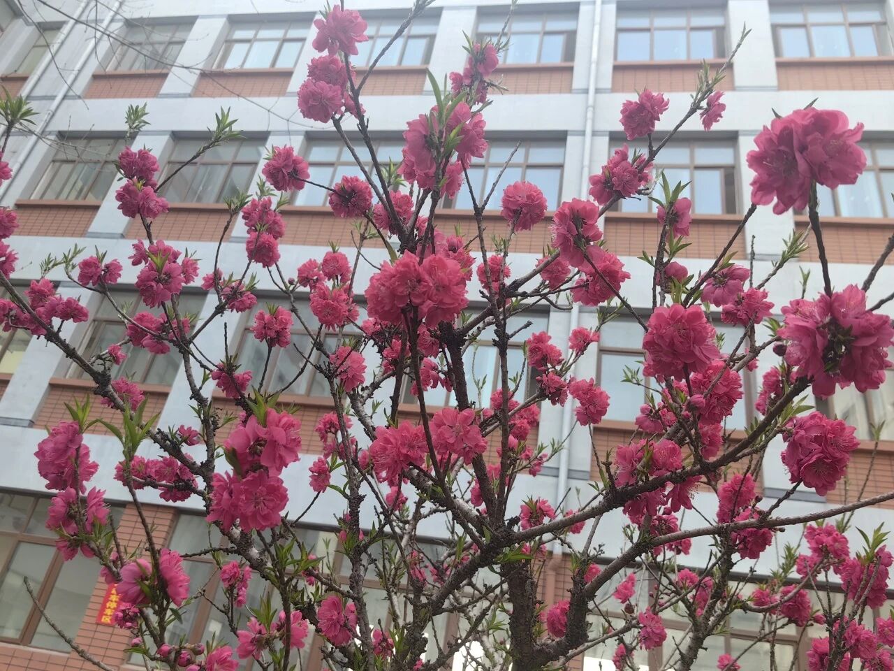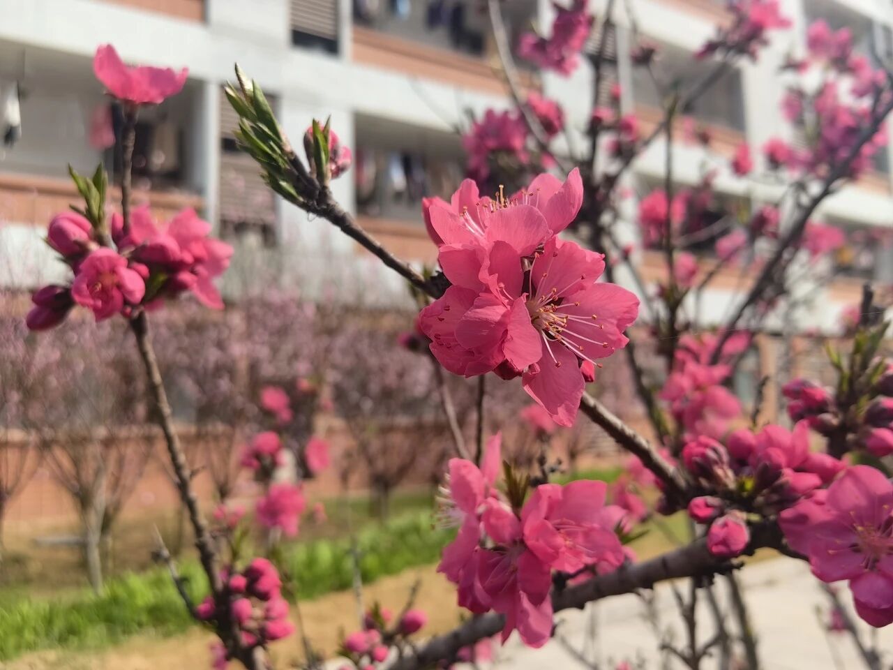 宿舍楼前,桃花灼灼,“桃之夭夭,灼灼其华”,与楼下花园里的迎春、鸢尾相映成趣;食堂之侧,海棠开得正盛,“海棠不惜胭脂色”,粉白相间,热热闹闹地压满枝头。春色从不远行,它就在我们身边,在日复一日的往返里,默默盛放。