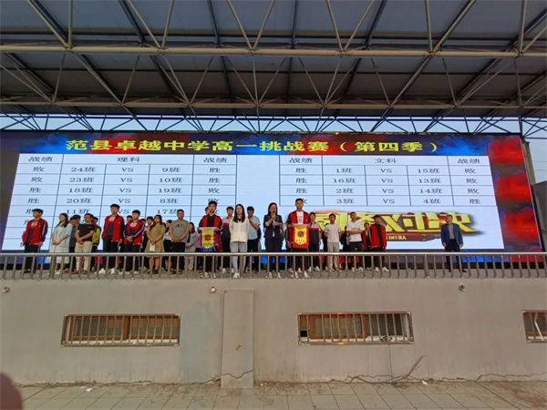 活动首先由高一B部主任张洪霞宣布第四季挑战赛结果,校长助理李建设为各班级颁发胜、败旗帜以及擂主旗,各擂主班班主任上台发言。