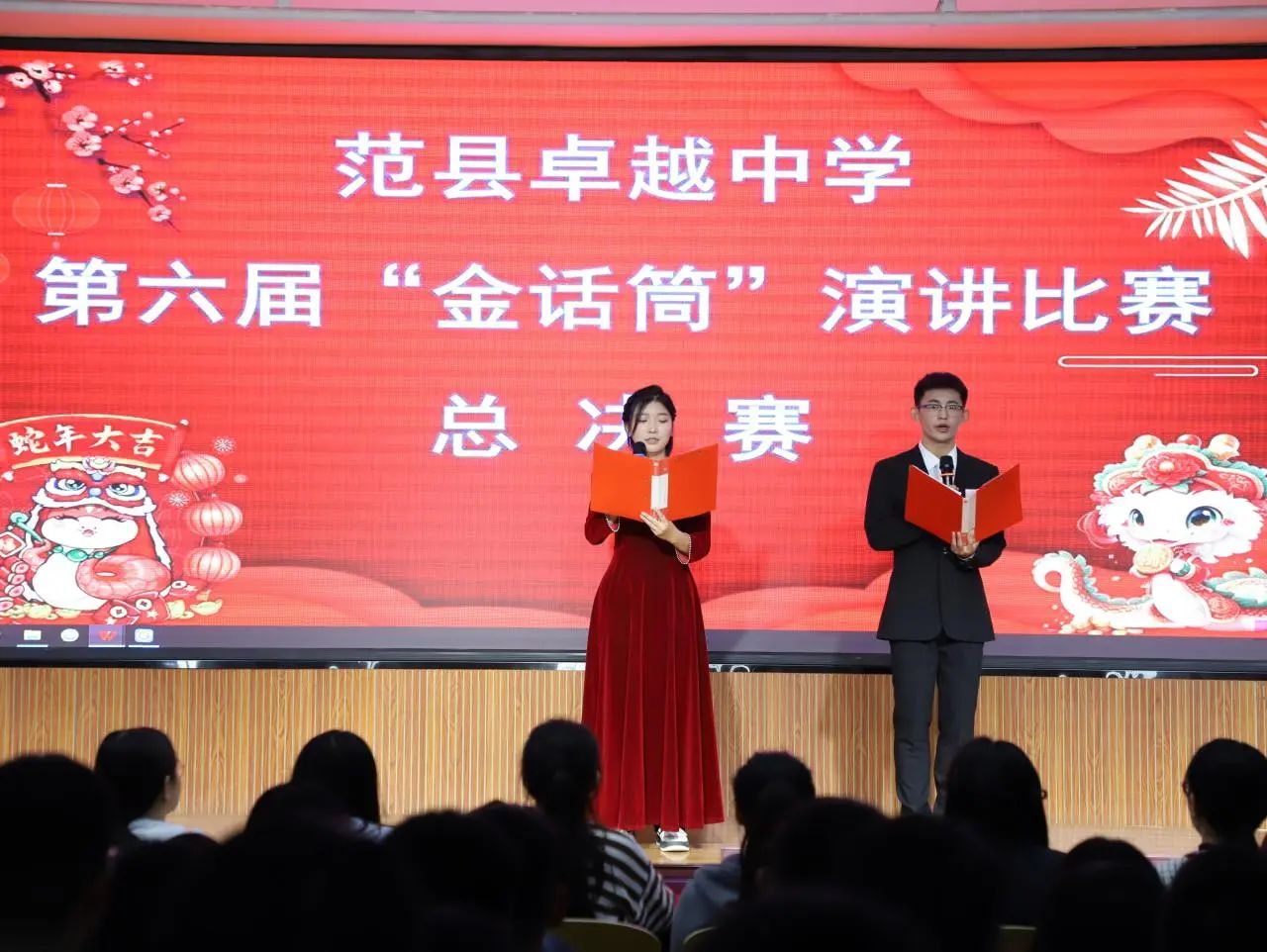 为进一步丰富校园文化生活,激发学生潜能,促进全面发展, 12月26日晚,范县卓越中学第六届学生“金话筒”演讲比赛总决赛圆满落幕。副校长范永继出席本次活动。