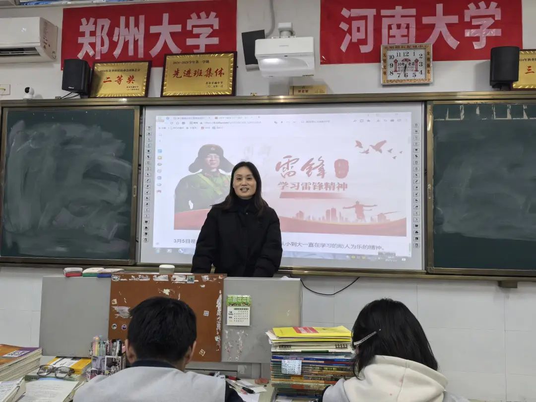 课堂上,班主任老师深情讲述雷锋生平,师生一起解读《雷锋日记》经典片段、观看影像资料、学唱雷锋歌曲。从普通士兵到全民楷模,同学们深度剖析雷锋“螺丝钉精神”的当代意义,体会“奉献不分大小,平凡亦可伟大”的真谛。