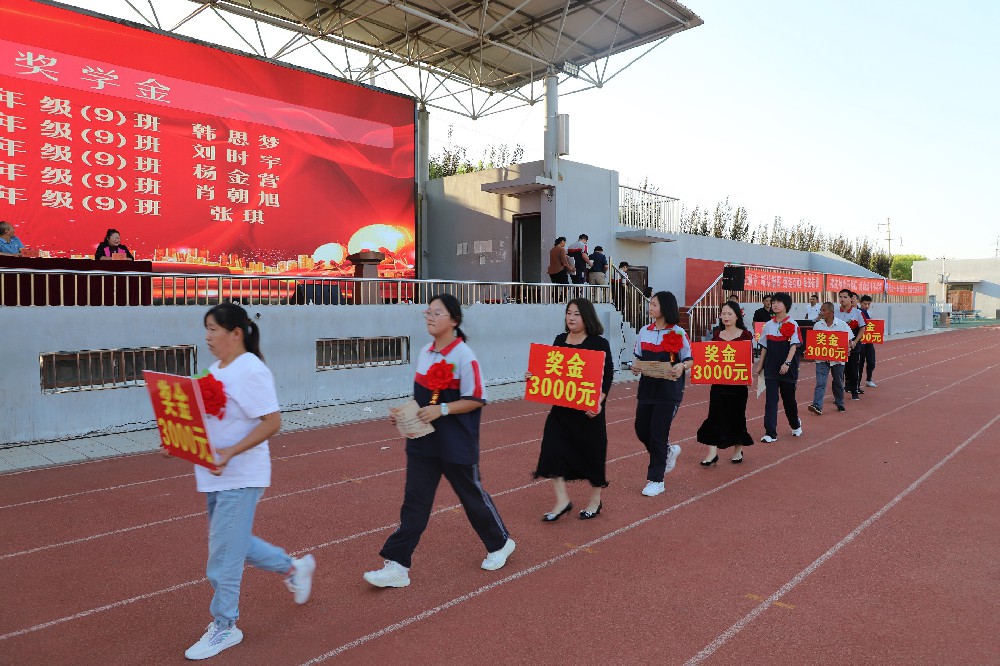 为表彰优秀,鼓舞士气,增强必胜信念,4月2日上午,范县卓越中学在操场举行高三年级一模考试成绩优胜者表彰暨励志专家报告会。校领导班子成员、相关中层干部出席大会。高三年级全体师生参会。9时许,大会在庄严的国歌声中拉开帷幕。宣传办主任范素贞主持大会高三B部主任徐子雨宣读表彰决定校长于世亮及相关领导干部、老师为
