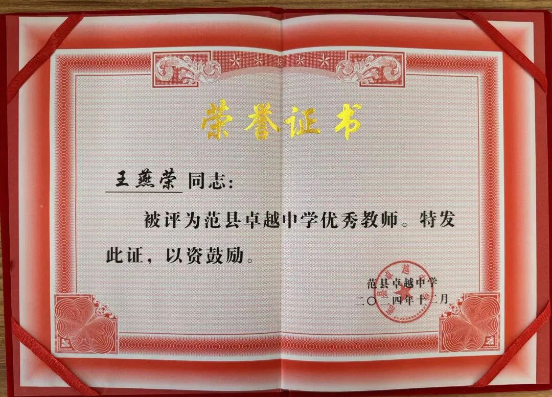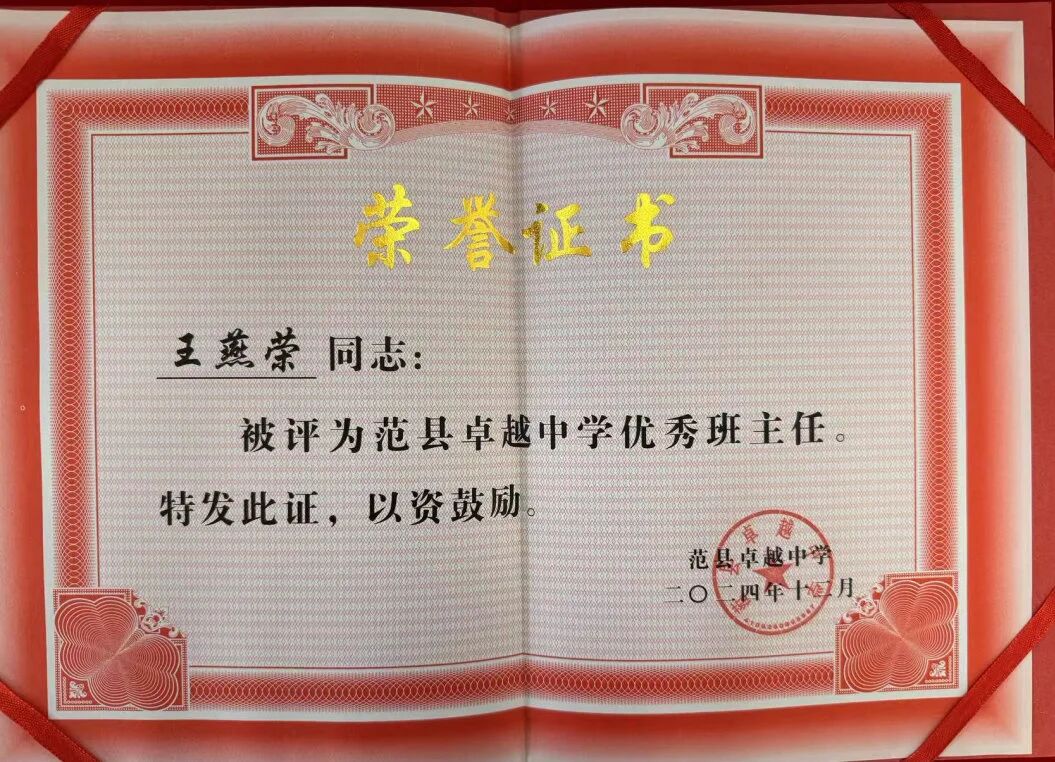 五载春秋,步履不停。王燕荣以责任守护成长,以匠心雕琢课堂,以爱心点亮方向。正如学生那句朴素的告白:“有您在,我会感到心安。”——这,正是对一名教师最珍贵的褒奖。