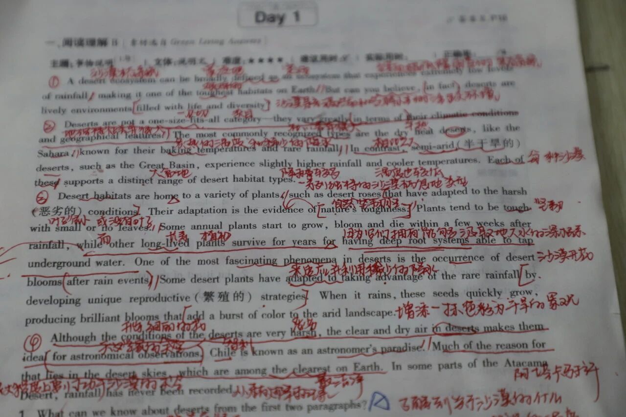 在王燕荣的办公桌上,一张张布满手写英文的英语试卷,一本本做满笔记的英语教材……立时就能将人的眼球紧紧吸引。密密麻麻的彩色笔迹写满对教学的极致追求。每次课前,她都要把一张试卷至少做三遍,一道单选题研析三种思路,一篇阅读理解标注五种解法……这份对专业的敬畏和对细节的执着,是她教学能力的底气所在,也让她的课堂永远高效且富有魅力。学生们慨叹:“您的严谨卓越,带我们以最优状态迎战学海!”
